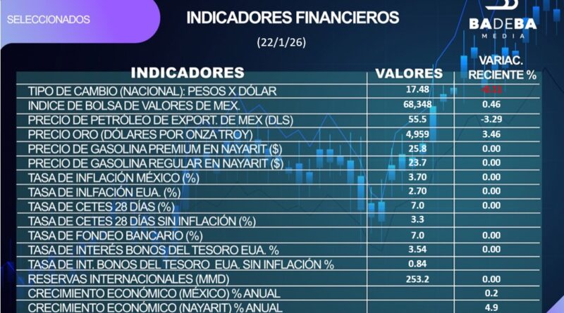 El peso mexicano cerró la jornada del jueves 22 de enero sin una variación significativa frente al dólar, reflejando una baja volatilidad en los mercados. El tipo de cambio se ubicó en 17.48.