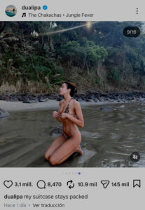 En sus publicaciones de Facebook, la intérprete de éxitos como “Levitating” ha presumido de una experiencia vacacional inmersa en la naturaleza. Los videos destacan los espectaculares saltos de ballenas, un evento icónico de las costas de Nayarit durante esta temporada, así como idílicas piscinas infinitas con vistas directas a la exuberante selva. También se le ha visto en áreas de descanso rodeadas de flora silvestre, playas vírgenes e incluso explorando un estero con presencia de cocodrilos.