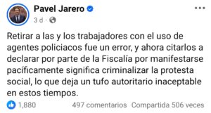 La represión del gobierno de Navarro Quintero ha sido tan evidente que provocó una condena desde el propio gobierno federal de la 4T. Pavel Jarero, senador por Nayarit y figura política cercana a Morena, reprobó públicamente la represión policial contra los trabajadores.